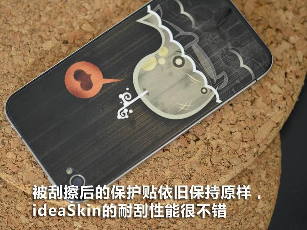 小编这里提到的“花瓶”,是指ideaSkin除了拥有顶级艺术家设计的各种产品风格外,它还能有效地防止日常使用中的划伤和紫外线照射,据厂商表示它表面覆有的高强度保护层,即使表面长期接触汗水也不必担心,同时还可有效抵抗因磨损、划痕而导致iPhone受到损伤。针对ideaSkin的耐刮性能,小编特意为做了测试。16/20