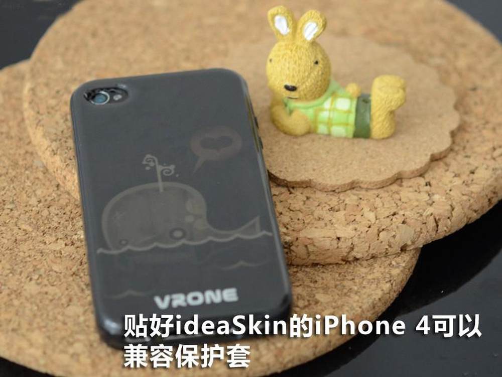 我们选用了一款iPhone 4的保护套,经过测试发现它虽然可以很好的兼容这款保护贴膜,但在取下保护套的时候保护贴被蹭花,所以小编要特别提醒一下广大果粉,如果您非要在贴好ideaSkin的iPhone 4上再戴上一个保护套的话,在取下保护套的时候一定要仔细、小心。14/20
