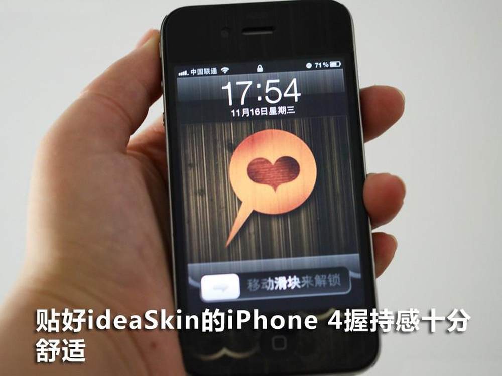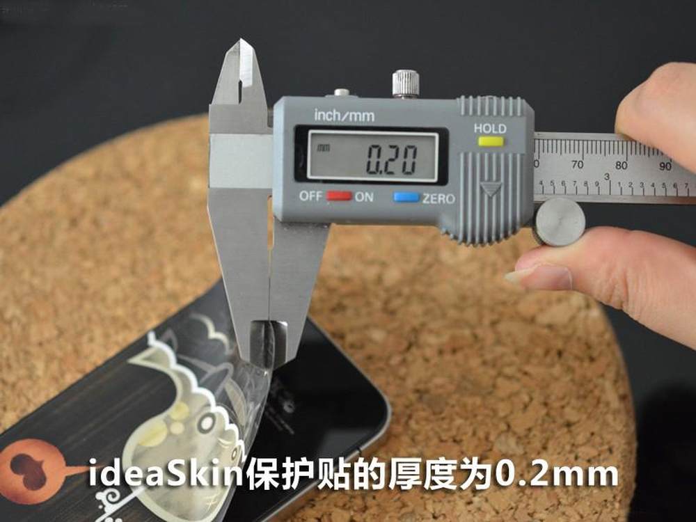 贴在iPhone上的保护贴如果很厚重,那果粉是不是更愿意选择防护性能更好的保护套呢?经过测量,ideaskin的厚度仅为0.2mm,贴在iPhone上近乎裸机厚度,皮肤覆盖了iPhone 4的正面、反面和侧面,大大增加了iPhone拿在手上的摩擦力,再也不必担心iPhone 4拿在手上会不小心把它滑落掉了。10/20