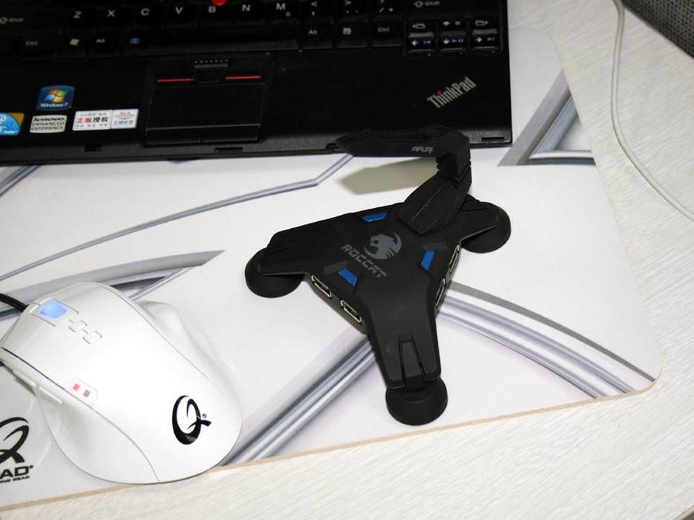 这颗看上去好像次世代科技产物的东西实际作用并没有那么神秘。来自冰豹的USB HUB附带架鼠标线的功能。其实旁边正在评测的鼠标更抢眼,据说淘宝上代购价格近千元。3/13
