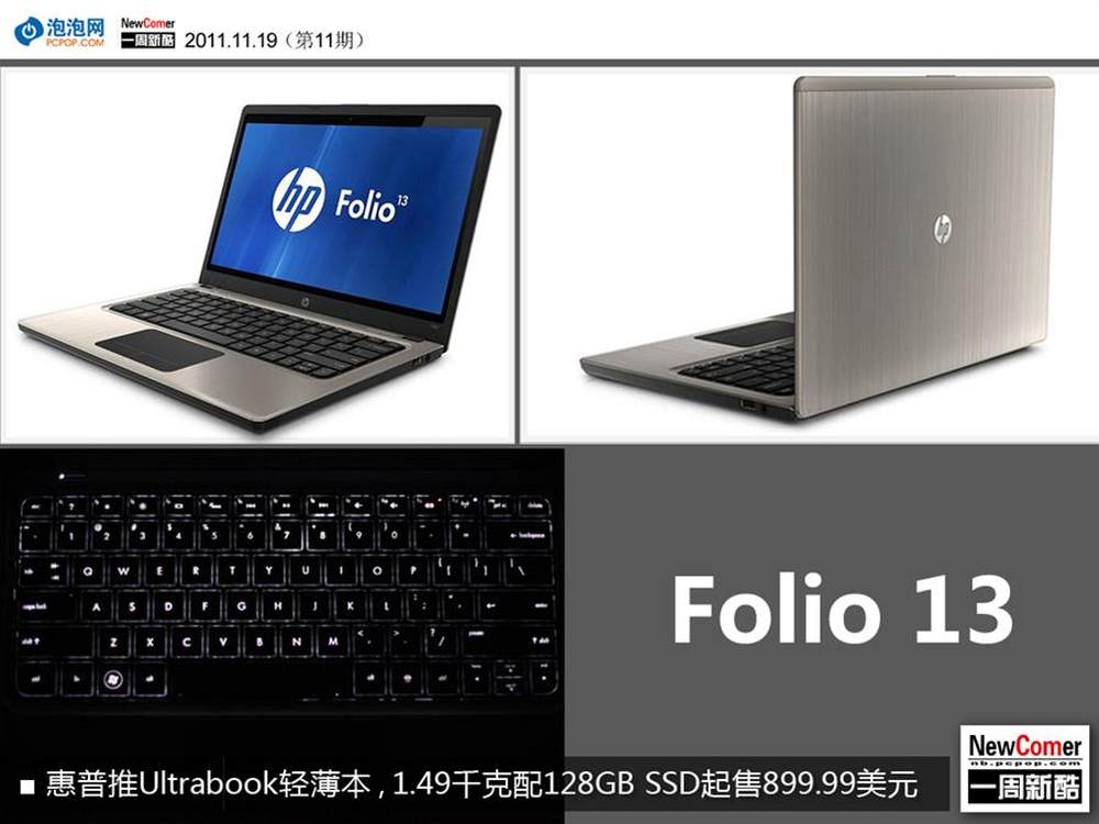近日l有网友拿到了惠普即将推出的13.3吋Ultrabook。据悉,惠普Ultrabook型号HP Folio,预计今年12月正式出售。从该网友在其博文中透露的信息来看,惠普Folio或被置于Pavilion dm3系列,采用银色拉丝金属外壳,底部则运用橡胶材质。据悉,该机配以13.3英寸背光显示器,整机重量1.49千克,厚度仅为18mm。同时该网友还提到,惠普Folio是目前为止他遇到过的最坚固耐用的Ultrabook机型,或将定位企业用户。硬件规格方面,惠普Folio将搭载Intel酷睿i3/i5处理器,内置4GB内存和128GB SSD(固态硬盘)。接口上,该机内置1个USB2.0、USB3.0、HDMI以及SD卡插槽,同时还配备了奥特蓝星音响及背光键盘。(详情请看:http://www.pcpop.com/doc/0/733/733101.shtml)4/8