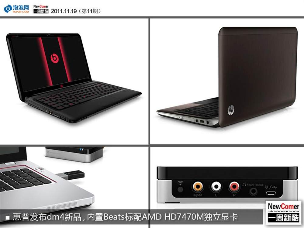 据国外媒体报道,本周惠普推出Pavilion dm4系列新品,除了内置Beats音响外,还标配AMD HD7470M独立显卡。此外,惠普还为用户引入无线音频功能,实现音乐的无线播放收听。售价方面,惠普Pavilion dm4 Beats版售价900美元,标准版630美元,无线声音套件另需100美元。(详情请看:http://www.pcpop.com/doc/0/733/733190.shtml)