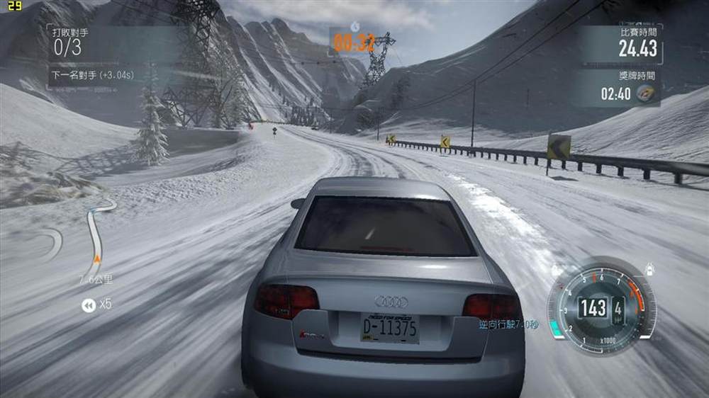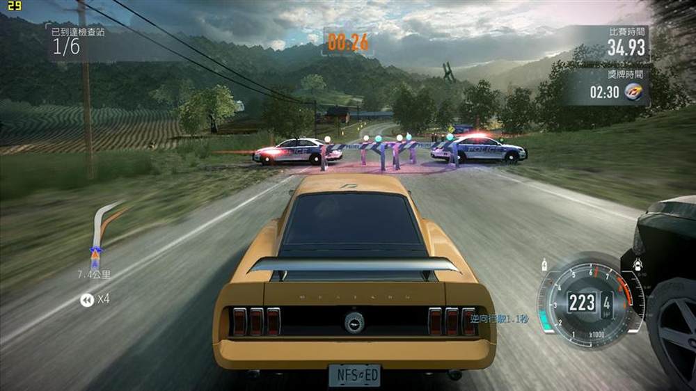 被警车盯上的结局往往是这样,看来警察从一开始就没想拘捕飚车的主角,而是直接宣判了主角的死刑。另外值得一提的是,警察超车绝对秒超,甚至在追车的时候会在3秒之内冲出主角视野内的地平线,还是那句话,跟警车比,主角绝对是个战斗力为5的渣。17/23