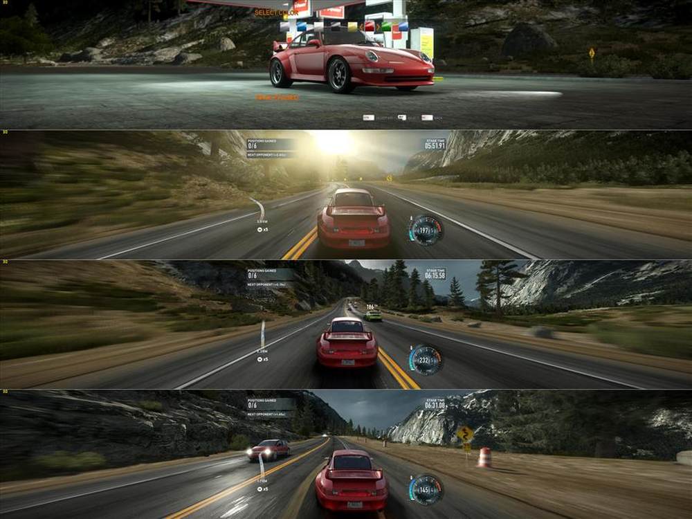 首先是备受期待的寒霜2引擎在游戏中变现不够令人满意,总体感觉还没有极品15精致,其次是完全线性化的剧情让游戏完全失去了自由度,甚至稍稍超出赛道就要强制重新开始,改装等元素也受到限制,但在三屏模式下游戏却拥有极佳表现,寒霜2引擎得到了完全发挥,感觉简直就像换了另一个游戏,不过拥有三屏幕系统的玩家实在太少了。3/23