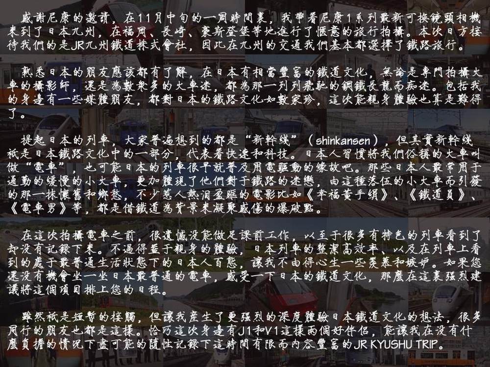 体验日本铁路文化 尼康1系列九州行记
