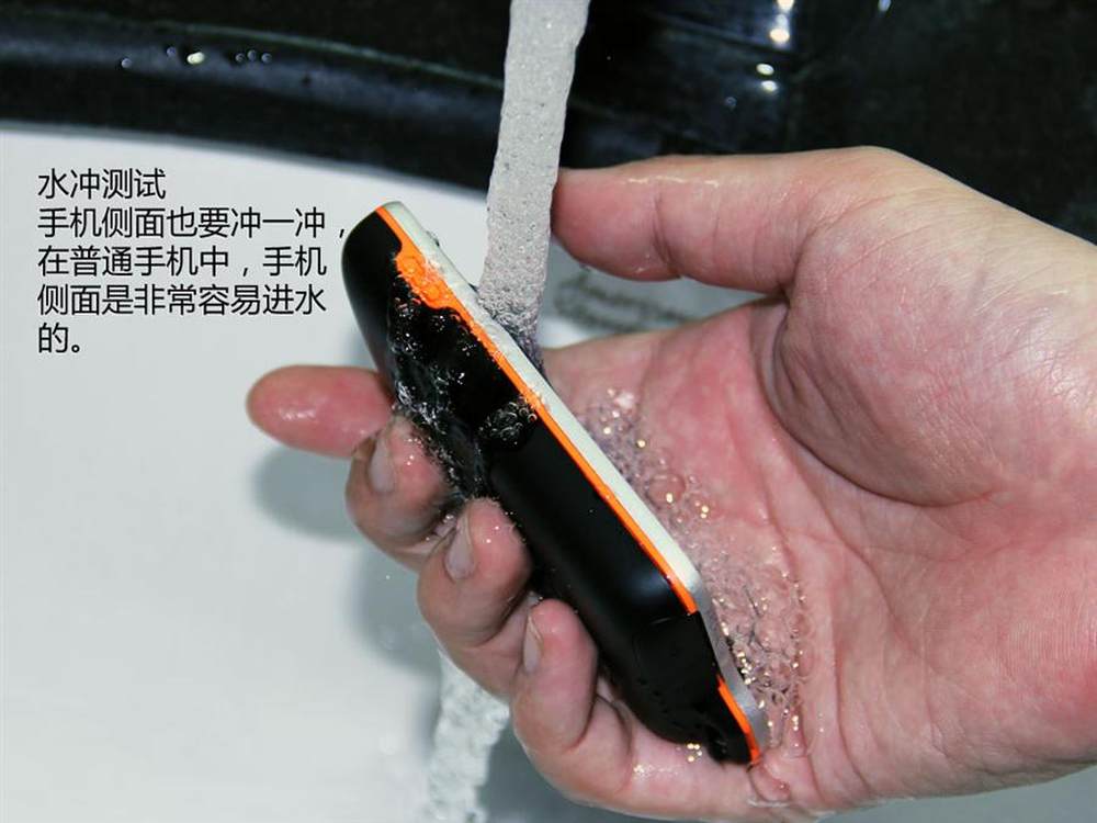 冲洗手机侧面,看看手机按键位置是否会进水。5/25