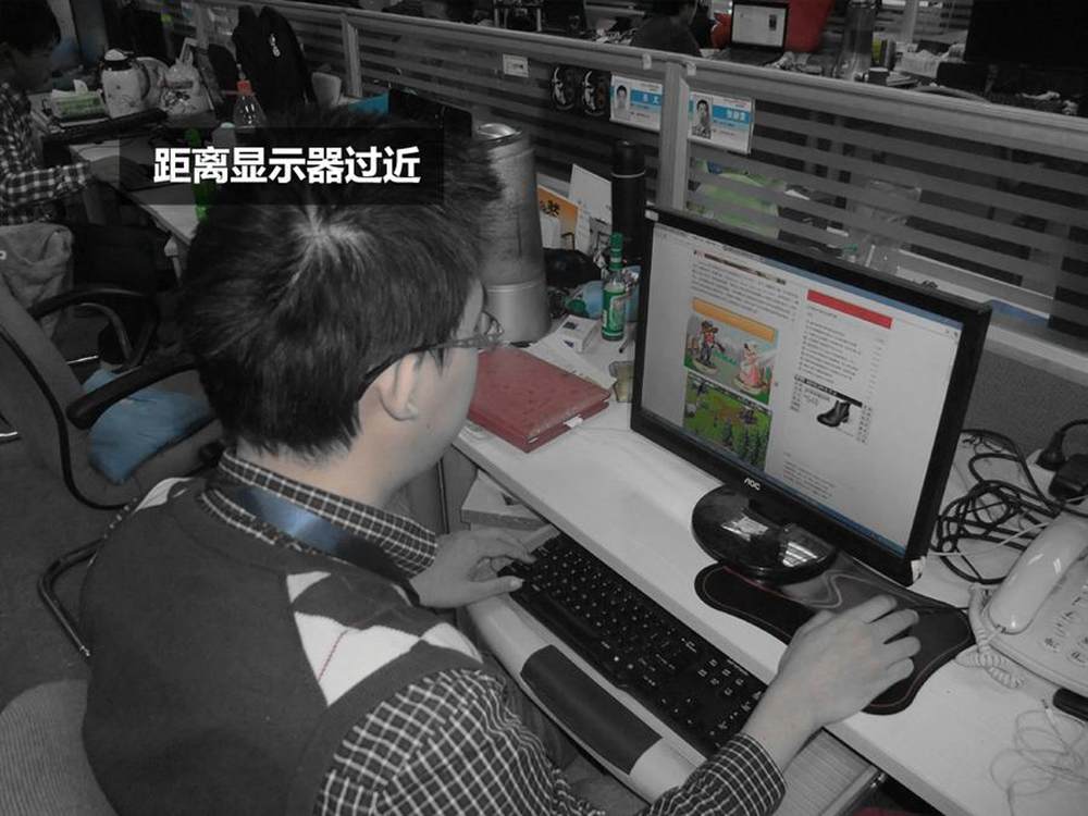 近视眼?散光?这些都不能成为你如此近距离观看屏幕的借口,且放开显示器的辐射不说,就是单单如此近的距离也会造成严重的视觉疲劳。8/10
