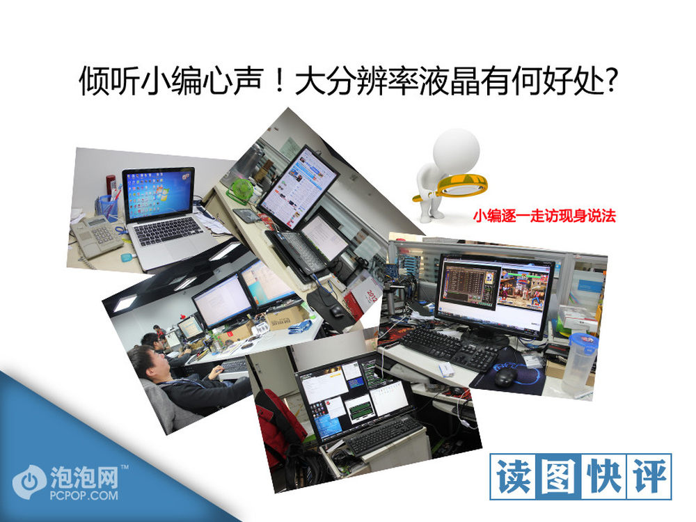 如今人们选购显示器的主流尺寸最小也是16:9的18.5吋LCD液晶,再大就是19、20、21.5、22、23吋甚至更大,我们自然只能在大尺寸的液晶中挑选。那么对于尺寸越来越大的液晶,它们所拥有的高分辨率究竟对我们的生活和工作有什么影响?今天,小编就走访单位内的众多同事去调查大分辨率液晶给他们工作、娱乐生活上所带来的便利,发现每个人都有各自不同的切入点。这次为了使内容不显得生硬难理解,小编没有摆出任何的参数,而是以图片的形式,以用户自身实际感受来呈现出今天的文章,文章不掺水,内容在图注里有详细说明。2/12