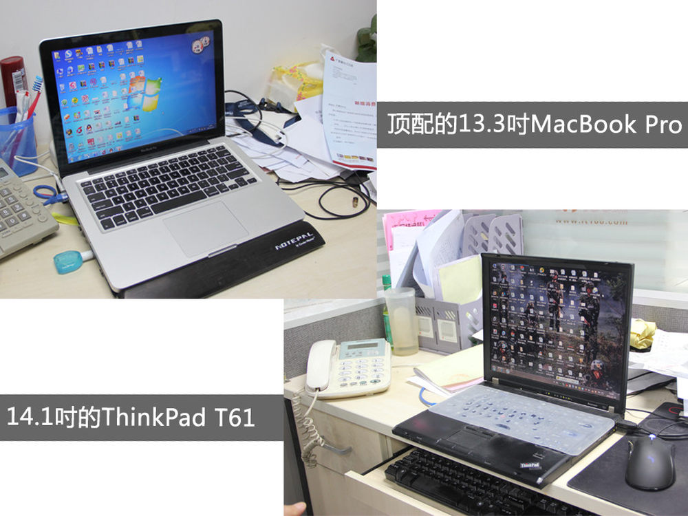 要说明的是,两位一人用的是顶配的13.3吋MacBook Pro,另一人用的是早已停产的ThinkPad T61。众所周知,两款笔记本的分辨率是不一样的,苹果这款的分辨率为1280×800(16:10),而T61则是方屏14.1吋,分辨率仅为1440×900(16:10)。