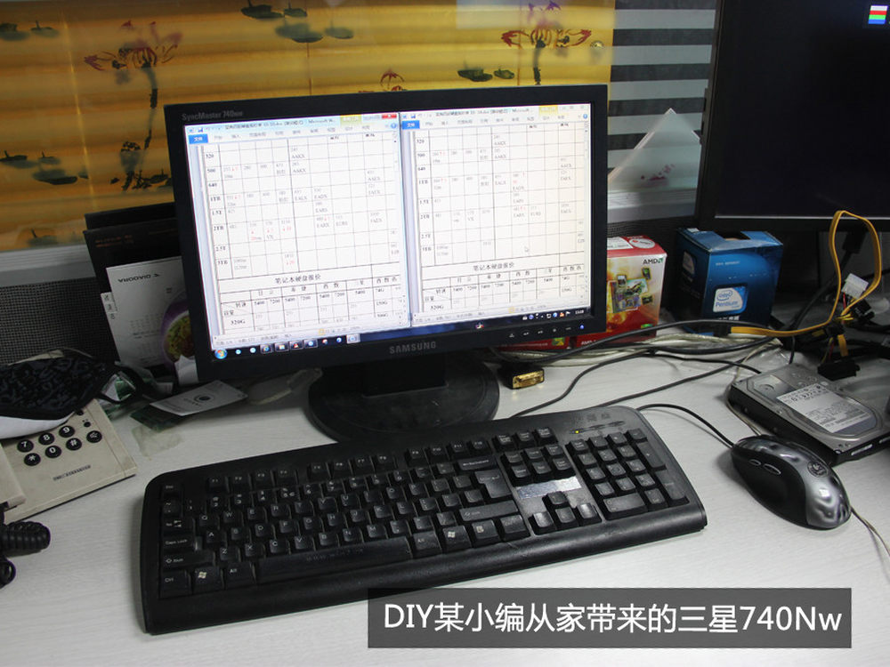 随后小编带着相同的问题来到了某位DIY小编的工位上,他多次要我给找个大显示器办公用,奈何评测产品总是要及时归还,他就从家暂时那时拿来了三星740Nw。这款17吋720P液晶的分辨率为1280×720,屏幕比例自然也是16:9。