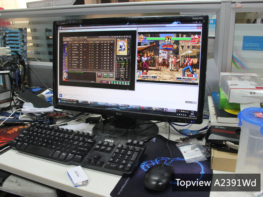 图为这位小编自购的Topview A2391Wd,他说“一开始的时候家里用的是19吋液晶,后来单位没得用,就买了台23吋的放单位了。从16:10过渡到16:9,尤其是尺寸上的增大,最初还是要适应下这种变化。老游戏好多还是普屏分辨率,好在现在的新游戏也都支持全高清。比如经典的War3也能注册表里调节到1920×1080,这样人物会清晰些。新的电影、游戏很多也支持宽屏分辨率了。现在单位的这台,偶尔中午休息的时候,我可以左边斗地主,在等牌的间歇打打拳皇。”10/12