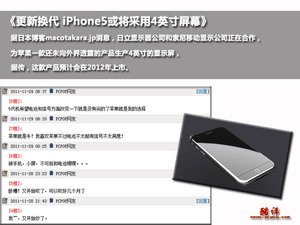 据日本博客macotakara.jp消息,日立显示器公司和索尼移动显示公司正在合作为苹果一款还未向外界透露的产品生产4英寸的显示屏,据传,这款产品预计会在2012年上市。