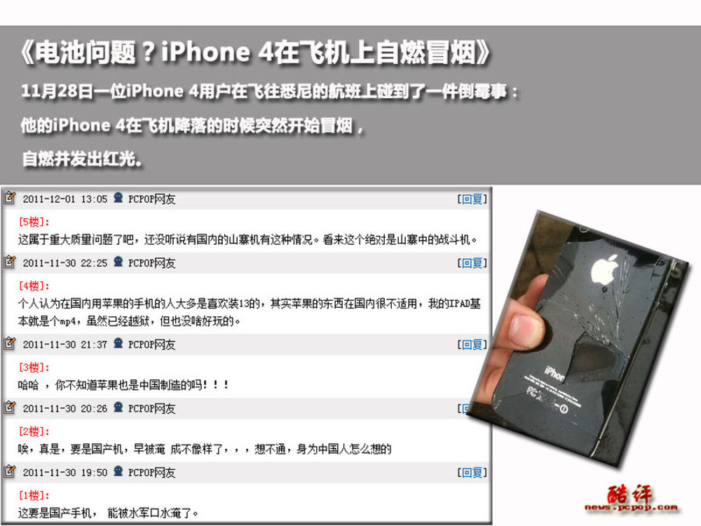 据澳洲航空公司的消息,11月28日一位iPhone 4用户在飞往悉尼的航班上碰到了一件倒霉事:他的iPhone 4在飞机降落的时候突然开始冒烟,自燃并发出红光。