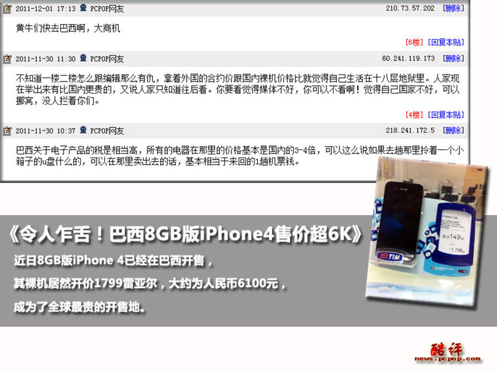 近日8GB版iPhone 4已经在巴西开售,令人意想不到的是其裸机居然开价1799雷亚尔,大约为人民币6100元,成为了全球最贵的开售地。