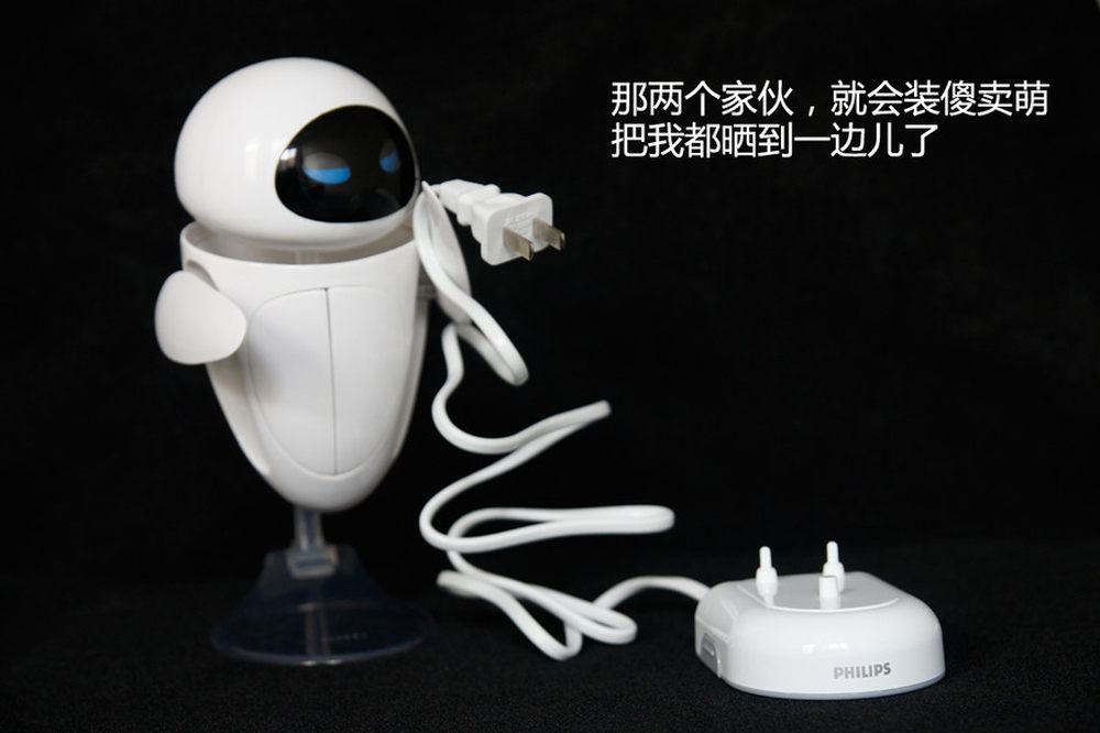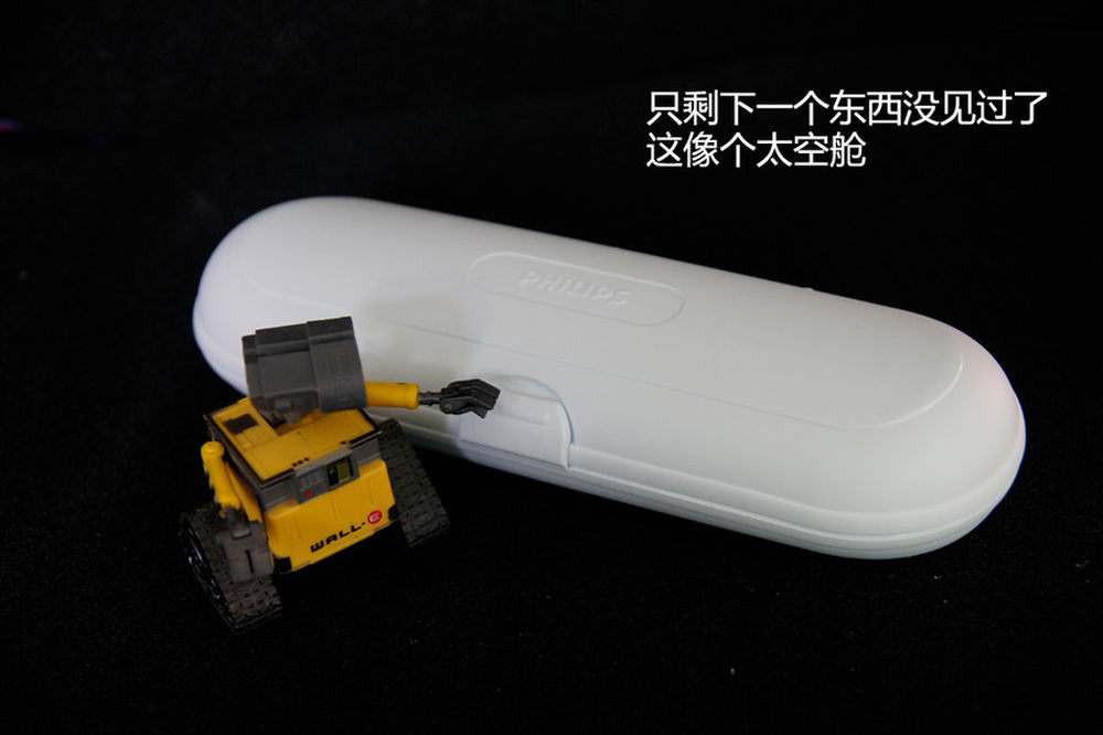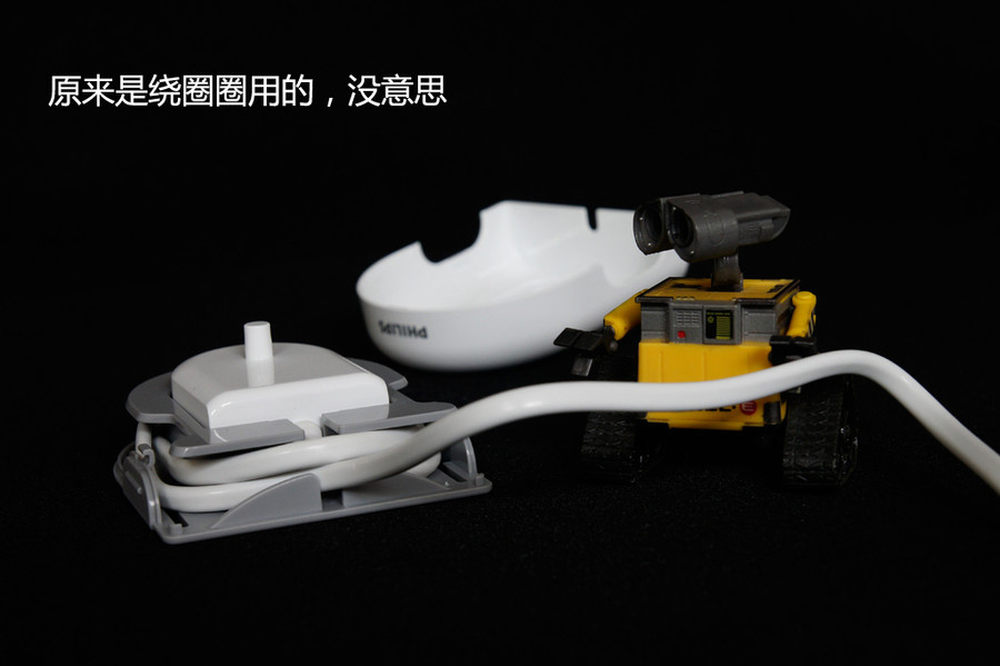 看完了牙刷再来看看附件,Sonicare声波牙刷的充电器也是烤漆的质地,和牙刷很配。充电器最前方的凸起圆柱就是输出端,表面毫无金属触点,应该是使用电磁传输原理。18/23
