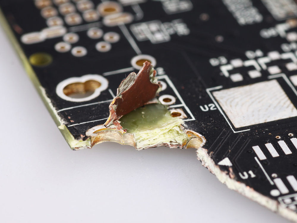 用钳子剪开PCB玻璃纤维表面的铜层相当厚实。8/11