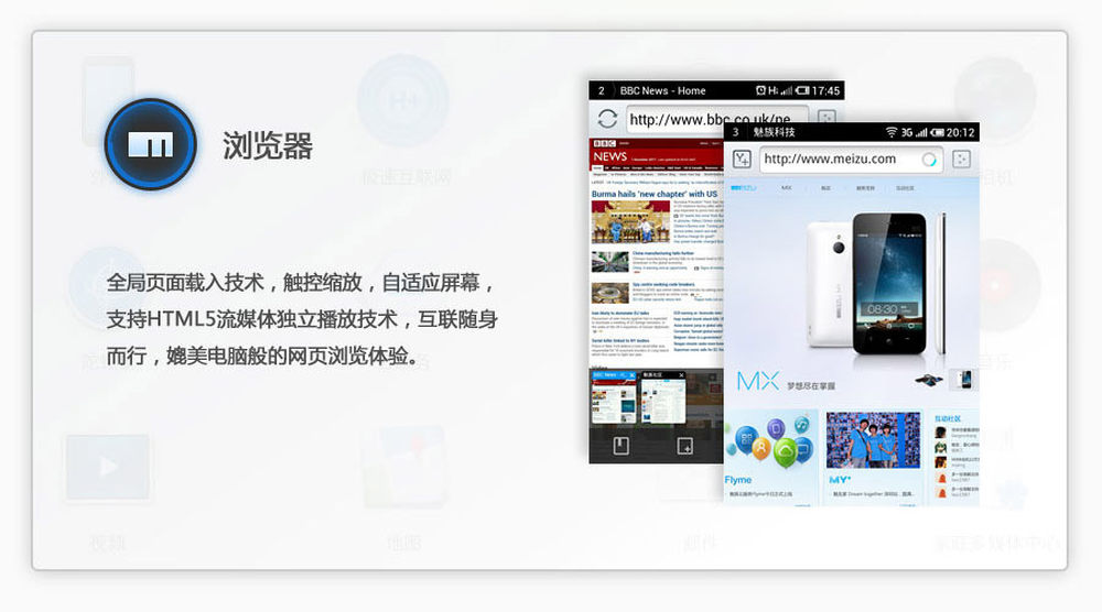 全局页面载入技术,触控缩放,自适应屏幕,支持HTML5流媒体独立播放技术。7/19