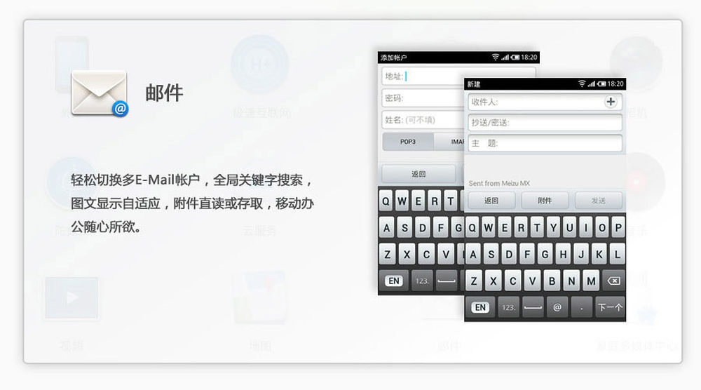 轻松切换多E-mail账户,全局关键字搜索,图文显示适应,附件直读或存取。