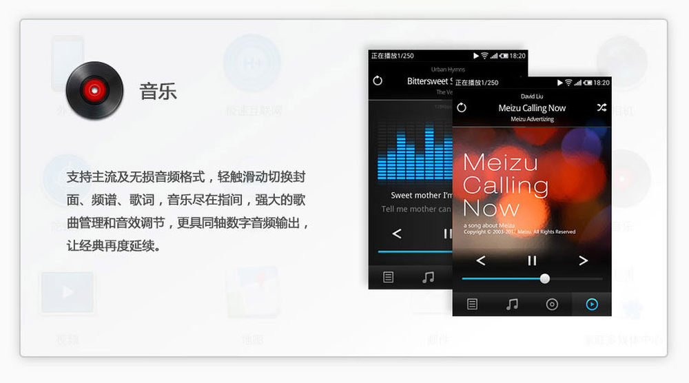 支持主流及无损音频格式,轻触滑动切换封面、频谱、歌词。