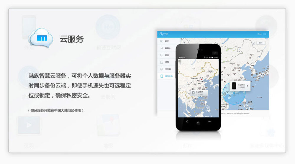 魅族智慧云服务,可将个人数据与服务器实时同步备份云端。
