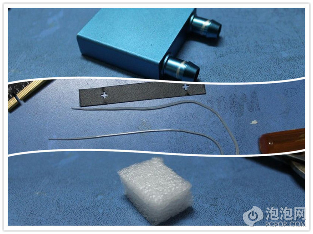 显卡水冷改造所要的用的工具,冷头、泡沫、贴片、扎线带9/24