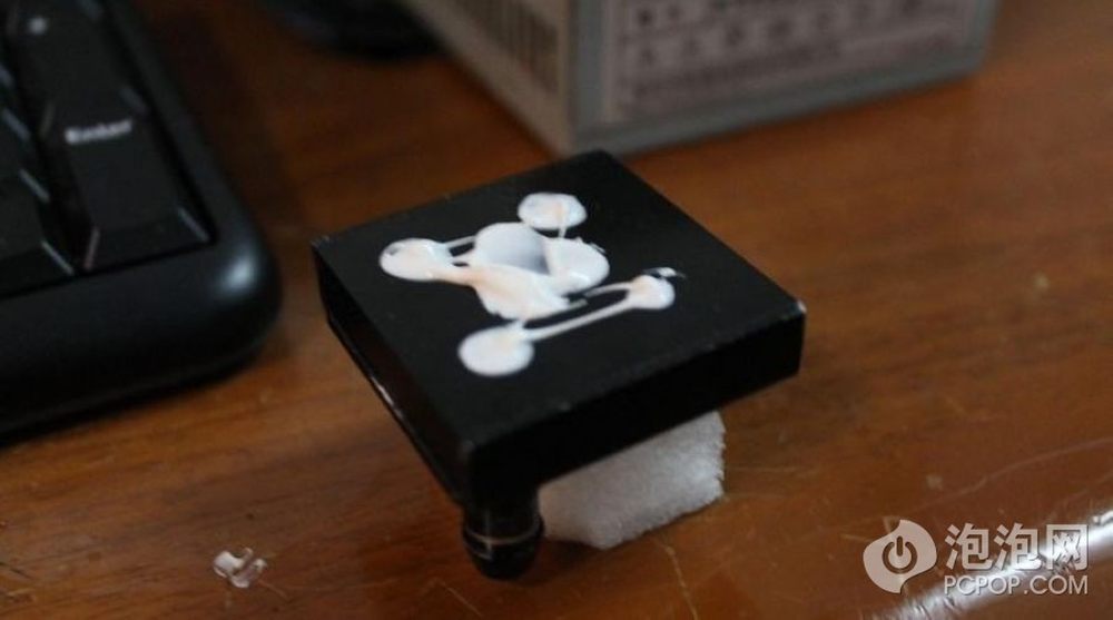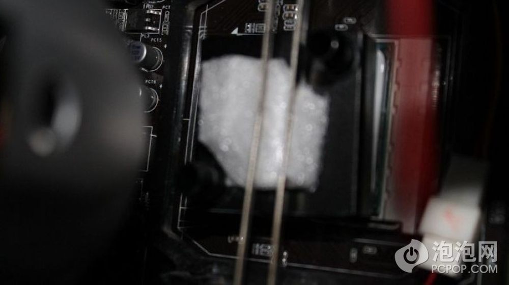 用扣具固定CPU水冷头,泡沫起到缓冲作用。15/24