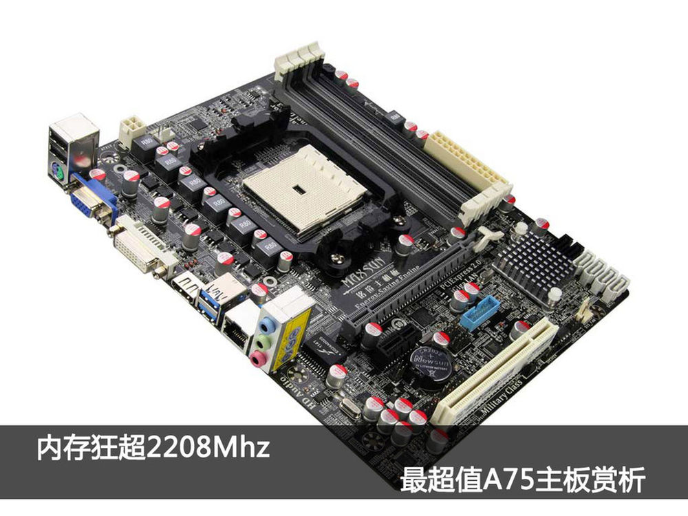 Llano APU在近几个月逐渐流行,而Llano APU和与之搭配的A75主板价格则持续下滑,前者在市场上极具竞争力,高性价比的A75主板也层出不穷,今天为大家介绍的这款铭瑄MS-A75MU3 Pro主板就是这样一款产品,它在398圆价格的基础上保证做工与用料,成为全球最超值的全固态A75主板,性能方面也毫不逊色,在这款主板上,A8 3850处理器可以超频至4GHz,内存频率也可以达到2208MHz。2/15