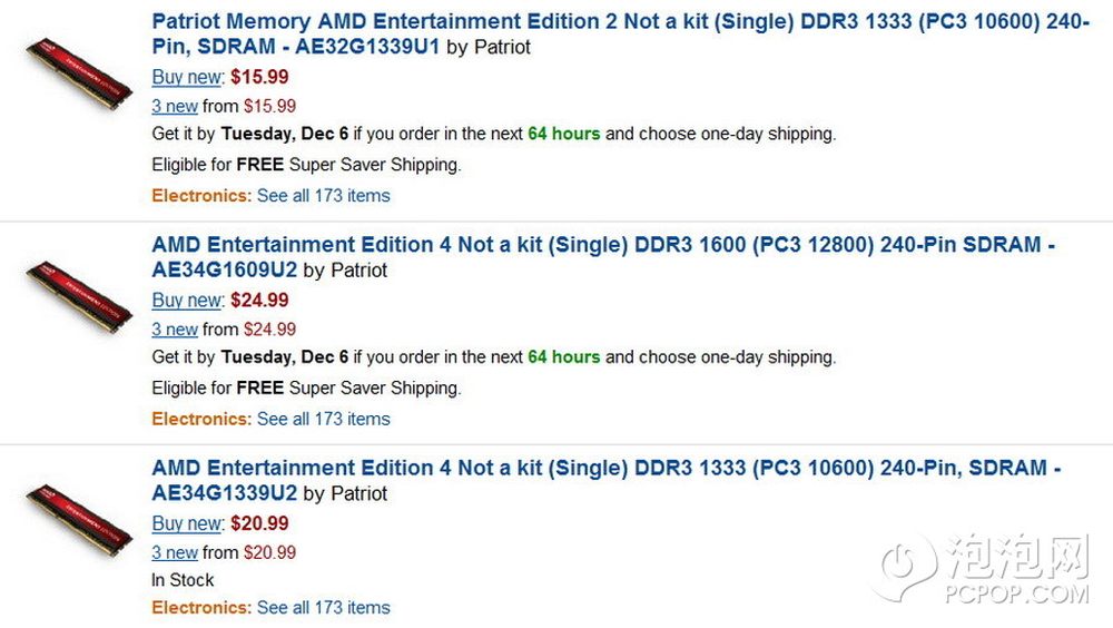 日本秋叶原已经率先到货,产品售价分别为1480日元(2GB 1333MHz)、1580日元(2GB 1600MHz)、2170日元(4GB 1333MHz)和2270日元(4GB 1600MHz),折合人民币分别为120元、128元、176元和185元。13/20