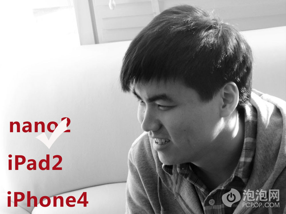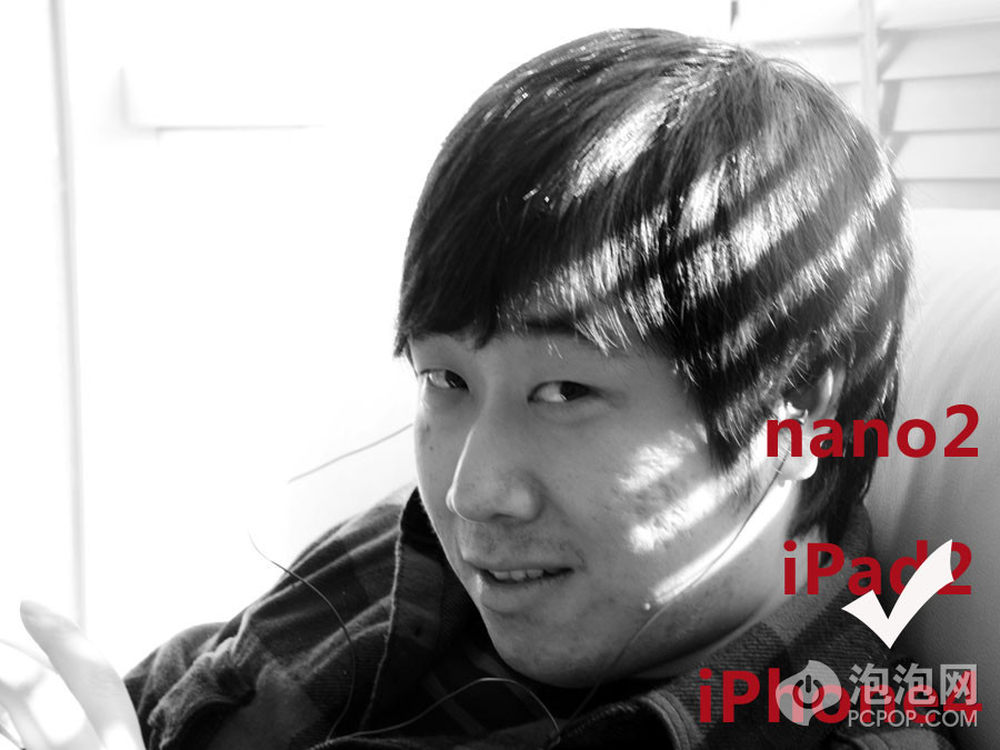 nano2声音最符合他的听歌口味,iPad2跟iPhone4声音太平。6/10