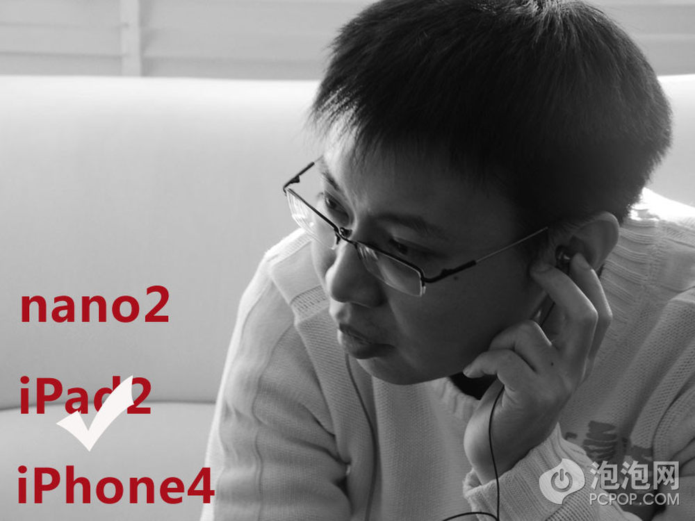 泡泡网MP3频道12月13日 苹果的产品不管是iPhone、iPad还是iPod几乎沦为街机,在一个人群嘈杂的的街头,你总会看到熟悉的“小白耳”出现在你面前。在发烧友眼里,苹果的音质如同白开水。但是在普通人面前,究竟哪款听感更符合大众口味?小编找到了iPad2、iPhone4以及老款nano2,三款设备。同时找来5名同事,事先并不告诉他们听的是哪一款设备,采用“盲听”的方式,看究竟哪款音质最好。2/10
