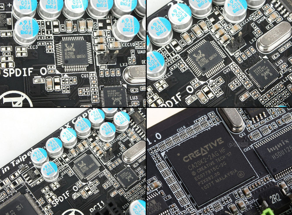 除了声卡G1.Sniper使用了创新的CA20K2芯片外,其他主板均为普通ALC889芯片。
