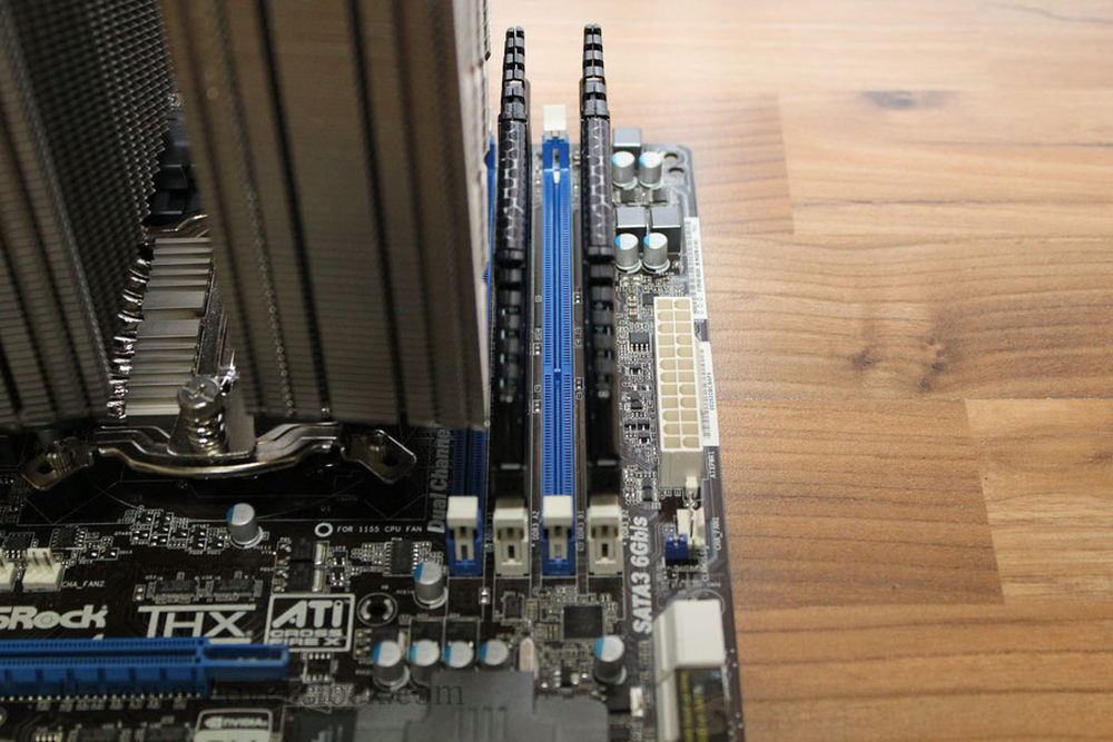 双塔散热器的通病,内存鳍片太高可能无法安装边缘的风扇。16/21