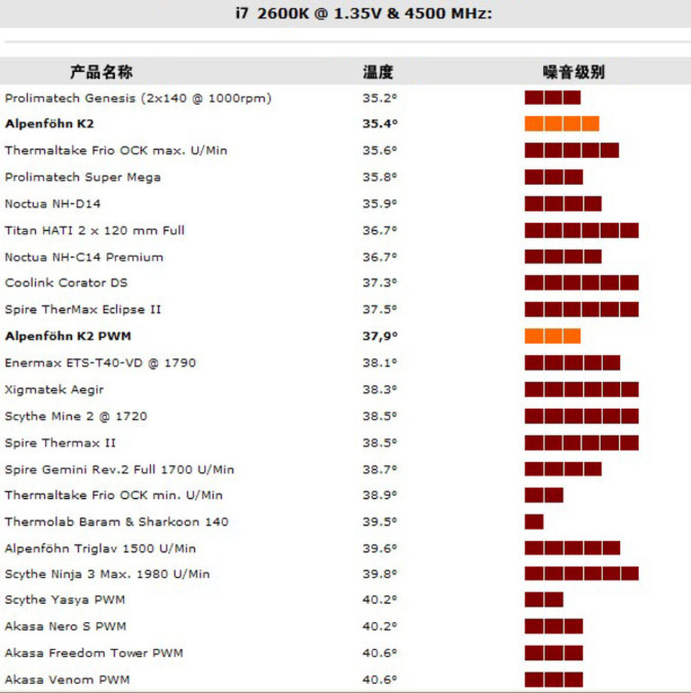结果令人满意,在同是风扇全转速下它已经超越了曾经红极一时的猫头鹰NH-D14,而且噪音水平旗鼓相当。使用PWM调速模式,风扇转速较低同样位列前茅,噪音却得到了更好的控制,上顶级散热器中噪音控制非常出色,散热能力也很抢眼!越是这样它的到来就越值得期盼,相信不久之后同款产品阿萨辛就会上市,到时候就能零距离体验了。