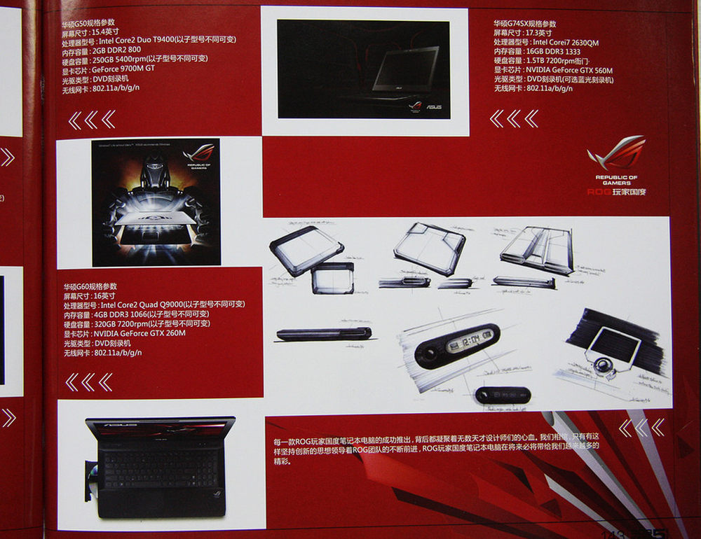 华硕旗下的ROG系列早已声名远赫,只要一提起ROG玩家国度,那么大家必然会想到的就是顶尖、专业和不断的突破自我。ROG笔记本近几年的进化史也同样印证了这一点,每一款新产品的推出都是对上一代产品的超越,从最早的G1、G2系列到如今的G53、G74新品,中间的蜕变不可谓不大。前几天华硕召开了新一代G53和G74玩家国度笔记本发布会,在国内正式推出了这两款ROG系列最新力作,笔者有幸在现场见到了ROG全系列笔记本。2/30