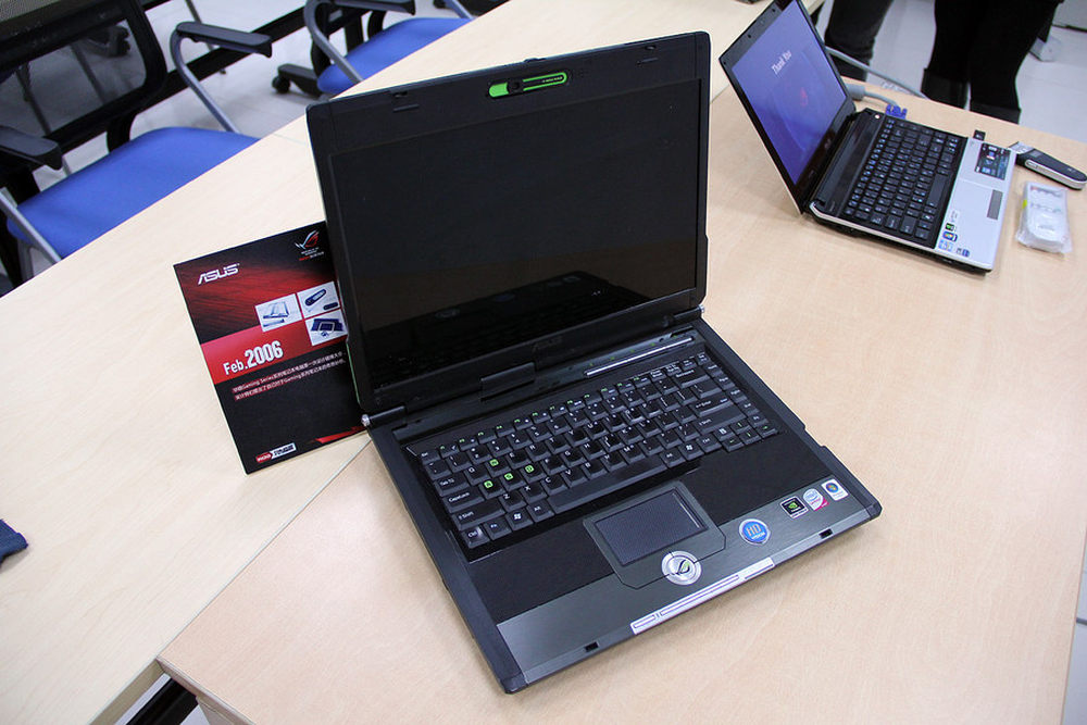 2006年11月20日,华硕发布了第一款和第二款ROG笔记本,型号就是G1和G2。这两款笔记本延续了华硕大力强调的应用体验至上的理念。特殊的A、S、D、W按键设计、多声道扬声器和随游戏运行而不断闪烁的灯光等炫目功能,让这两款笔记本成为当时游戏玩家的利器。图中就是极具历史意义的G1。5/30