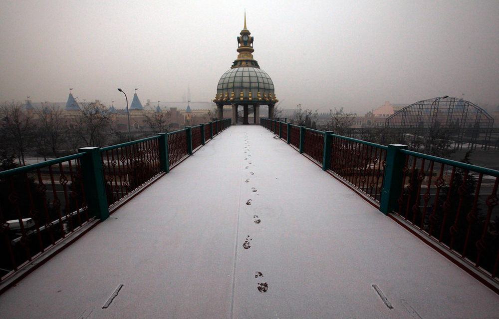 刚刚下过的小雪,落在沃德兰乐园的天桥上。