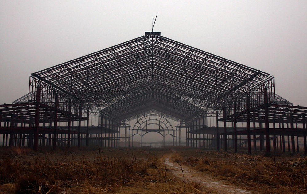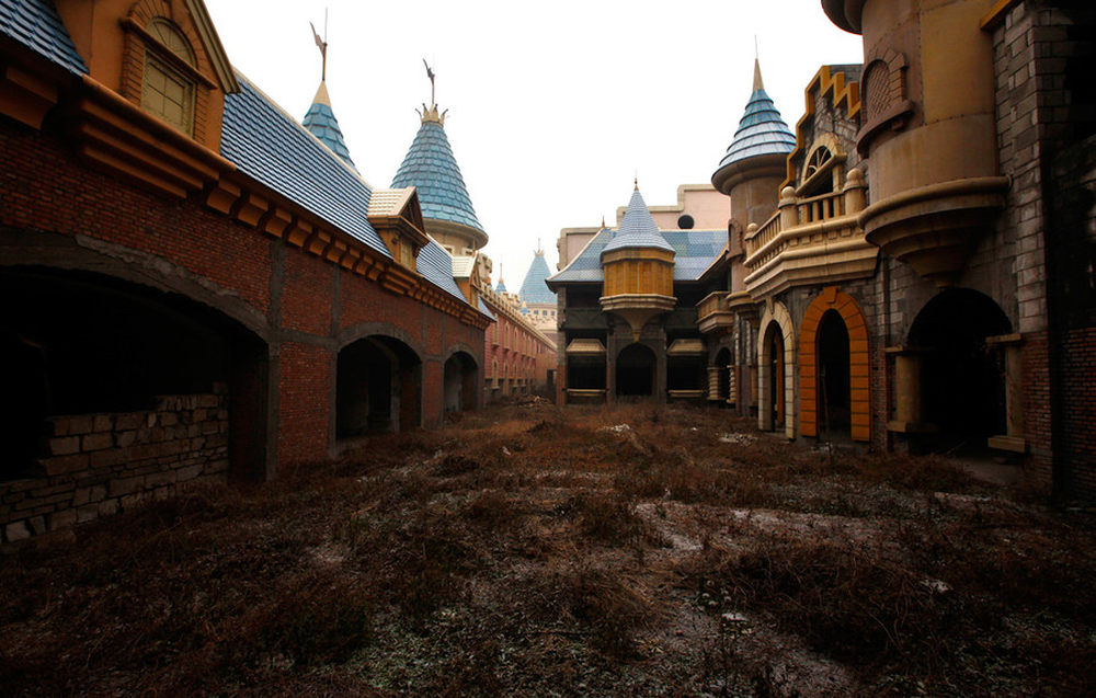 沃德兰乐园的停车场,以及废弃的欧式建筑群。沃德兰乐园因为当地政府与村民在土地价格上未能达成统一,故建设一半就停工了。