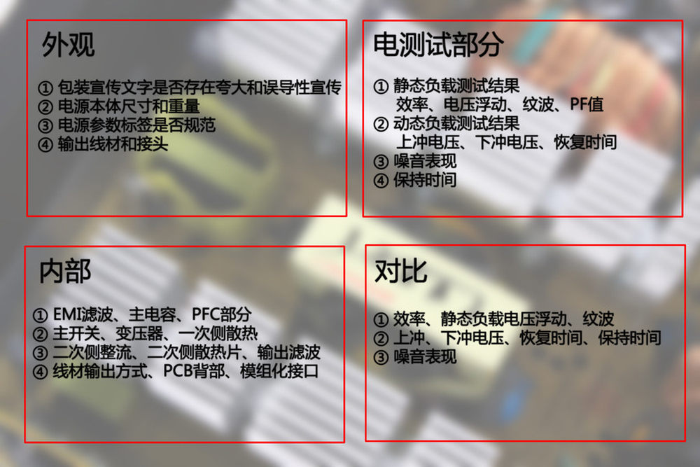 同时参加对比的项目还有转换效率、纹波、动态负载稳定性、保持时间、噪音等。