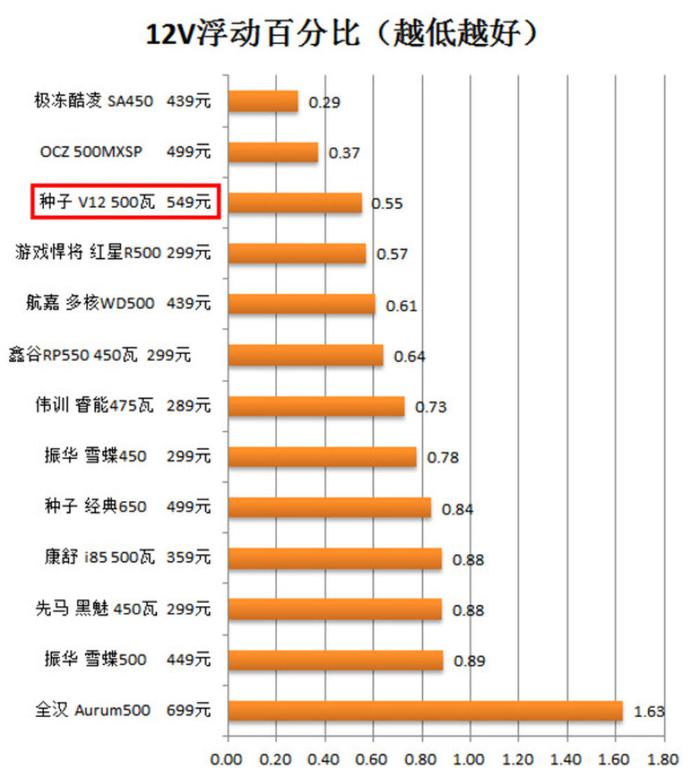 这就是解决办法,也就是四大部分中的第四部分:对比。这样你就可以知道一个12V浮动在0.55%%的电源是不是算很好。当然我们对比的范围一般控制在电源功率正负50瓦,而且尽量控制在10个左右,太多了谁都容易乱。
