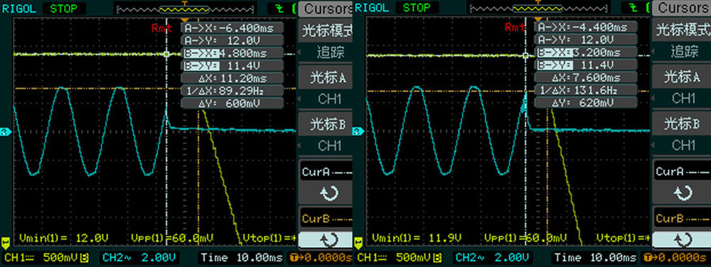 而且我们还测量一次负载变化后电压恢复所需要的时间,时间当然是越快越好。