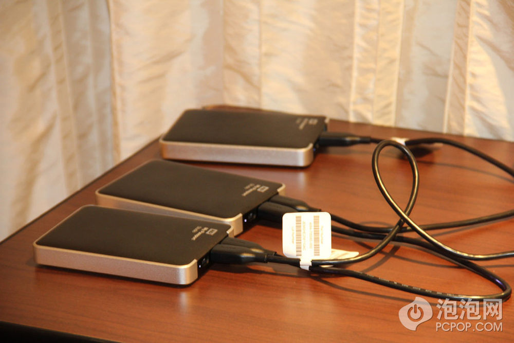 使用火线800接口的三硬盘串联方式。笔者问张启扬:“西部数据未来有没有打算推出便携、支持无线,并且带电池的产品?”