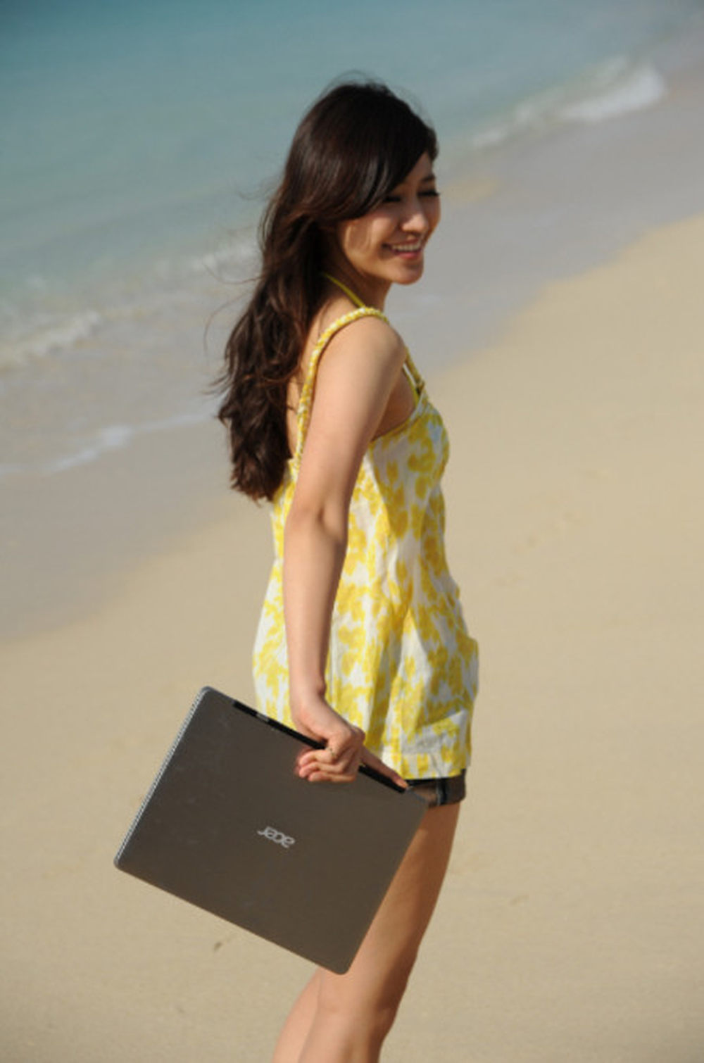 单手拿着我们的Acer 蜂鸟S3,美女模特表示毫无压力。12/24