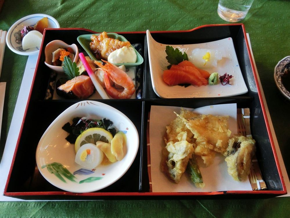 中午吃的有寿司、生鱼片,以及一些煎炸的小食品。15/38