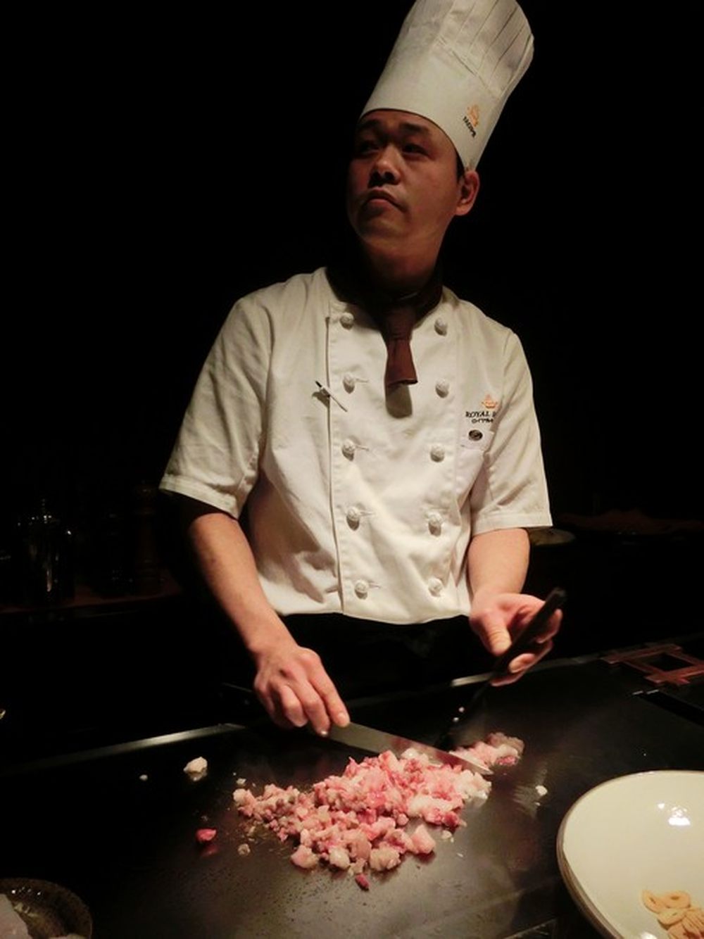 淡定的厨师正在细心的做着神户牛肉。30/38