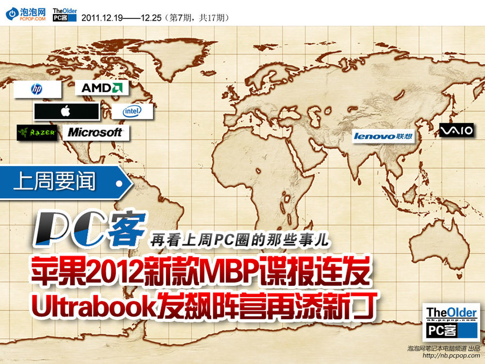 回顾上周业内动态,2011年即将结束,苹果新款MacBook Pro近日谍报不断,除了或将配以超高分辨率显示屏外,AMD HD7970M或也将成为2012苹果新品的选配显卡。同时凭借最新申请的专利,苹果新款MBP电池续航或将进入新的境界。至于倍受青睐Ultrabook阵营,本周再添新丁。联想ideapad U300s和惠普Folio 13均已在中国大陆地区正式启动预订或开售。好了,接下来就让我们来看看上周PC界的那些要闻吧!2/14