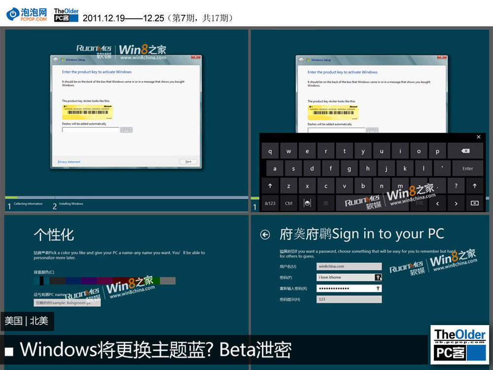 据相关媒体报道,Windows 8 Beta将采用青色主色调,正式告别自Windows 95以来的主题蓝。从目前掌握的相关消息来看,微软将于2012年2月正式发布Windows 8 Beta公测版,正式版开售或将在2012年8月左右。(更全图片请看:http://www.pcpop.com/doc/0/745/745679.shtml)11/14