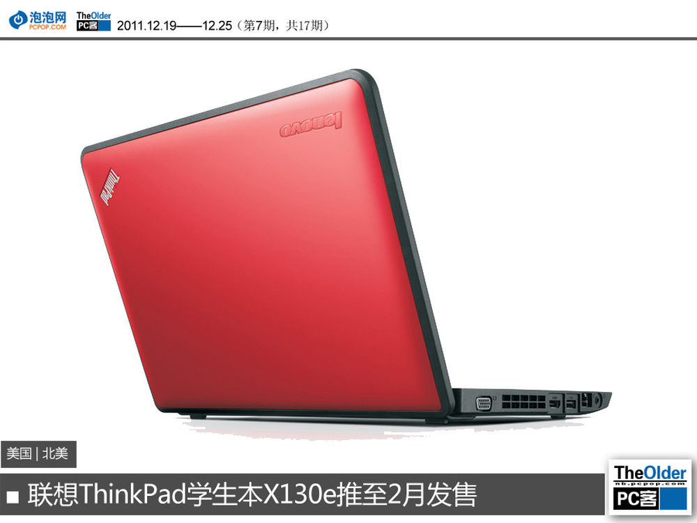 据Engadget报道,联想ThinkPad X130e学生本已经被推迟发售,预计明年2月才会推出。此前有消息称联想ThinkPad X130e会在12月20日出货,遗憾的是这款11.6英寸的学生本最终还是延迟了。据悉,ThinkPad X130e是一款面向学生用户的笔记本产品,搭载AMD E-450处理器(主频1.65GHz),可选配Intel酷睿i3-2367M(主频1.4GHz)以及AMD E-300(主频1.3GHz)等处理器;内存为2GB,高配可以达到8GB;500GB的硬盘;蓝牙3.0;官方实测续航时间为8.5小时;搭载了Windows 7系统。基本款预计售价为469美元(约2985元人民币)。14/14