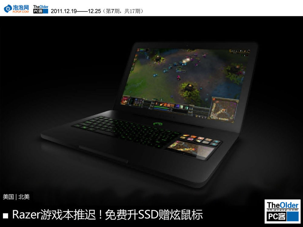 据国外媒体报道,雷蛇在FaceBook页面上已发布通告,表示由于256GB SSD供货延迟,致使公司无法再假期前如期推出Razer Blade游戏笔记本,预计可能最早要延期至2012年1月中旬。据悉,此前雷蛇曾表示将为购买用户免费将320GB HDD升级为256GB SSD,售价2800美元(约17820元人民币)。(了解产品具体配置:http://www.pcpop.com/doc/0/747/747744.shtml)