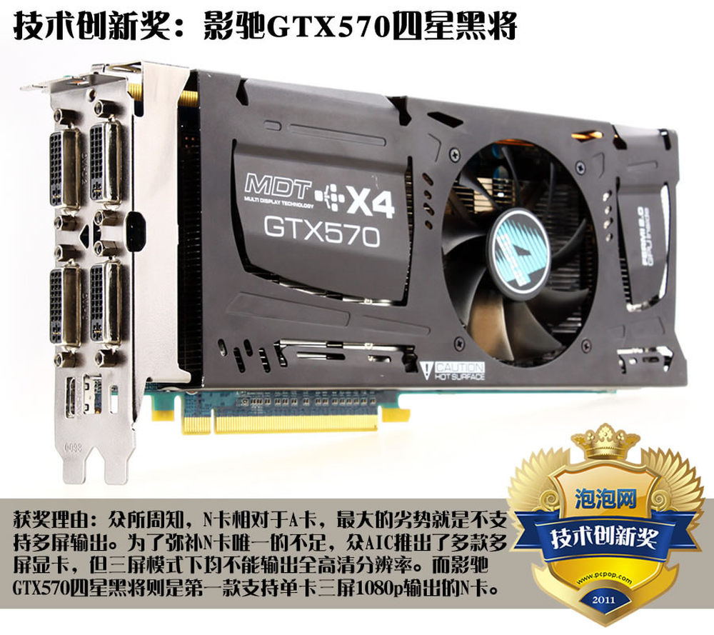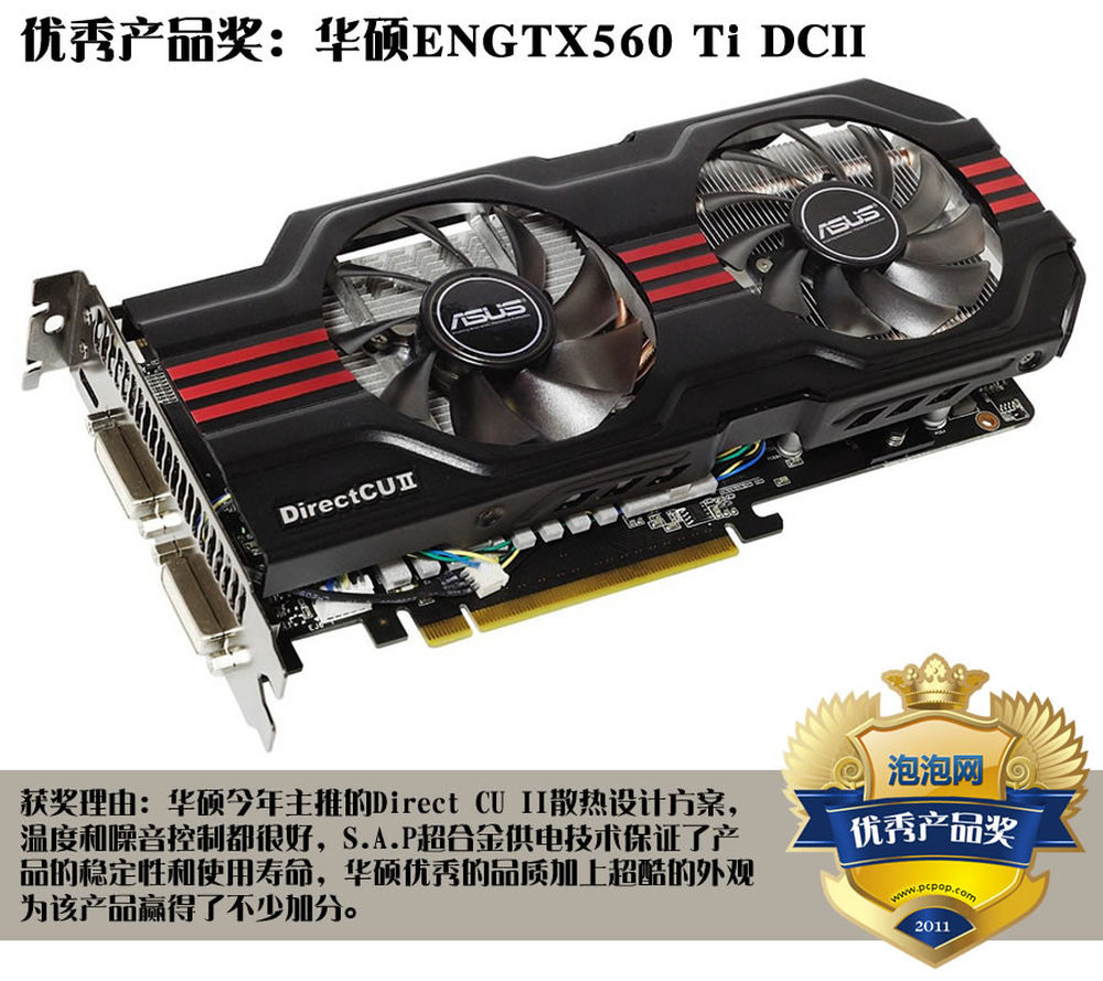 泡泡网显卡频道12月29日 2011年对于PC显卡行业来说是略显平淡的一年,NVIDIA在搞Tegra、AMD在推APU,两大巨头明显放缓了更新换代的脚步。新品比较少,这可就苦了众AIC/AIB合作伙伴们,但也催生了一大批优秀的非公版显卡产品、以及众多显示创新技术,让游戏玩家们有了更多的选择。