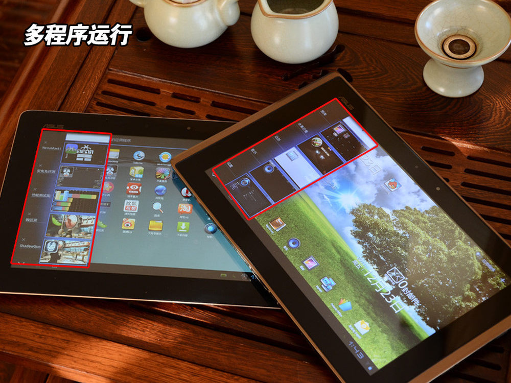 首先给使用体验带来的不同就在于多程序运行方面,Tegra 2处理器在后台运行程序过多时会有明显的卡顿现象,而Tegra 3则基本不会出现这个现象,运行依旧非常流畅。3/14